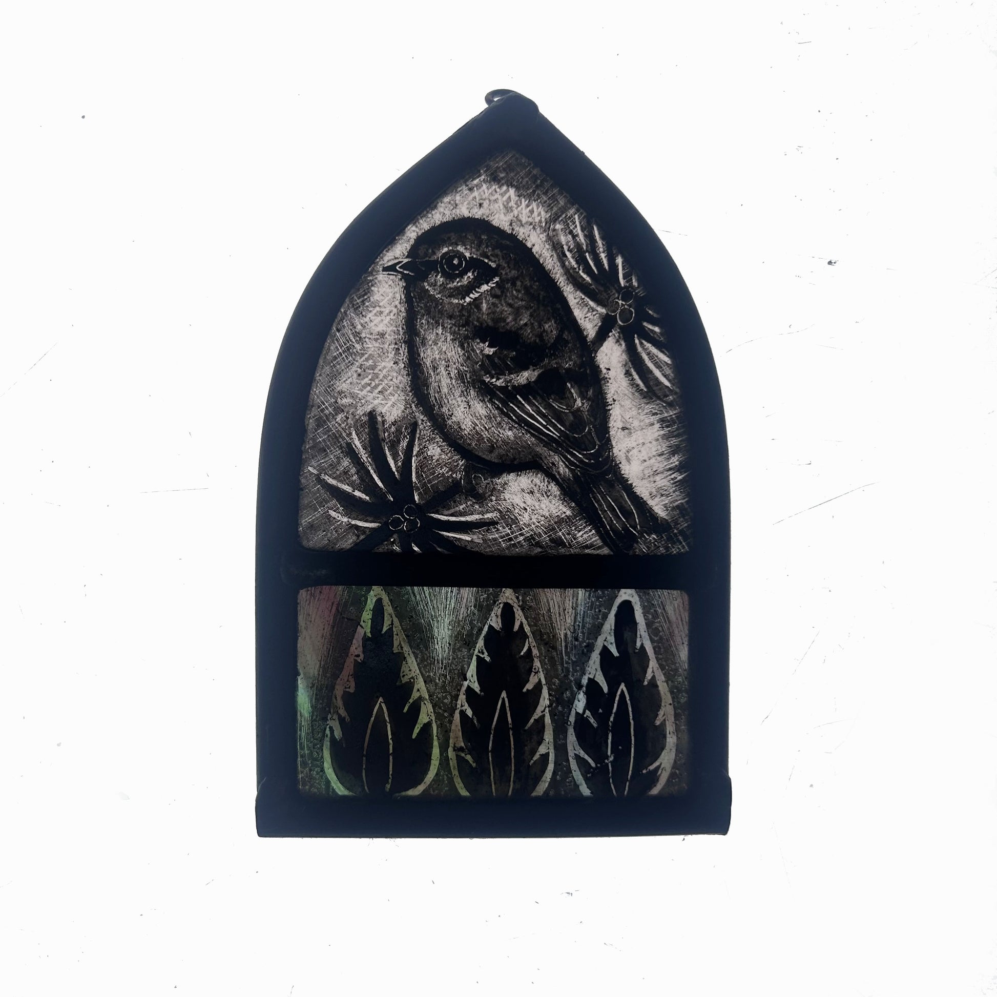 Firecrest and Pine Cone. Stained Glass Arch,Small