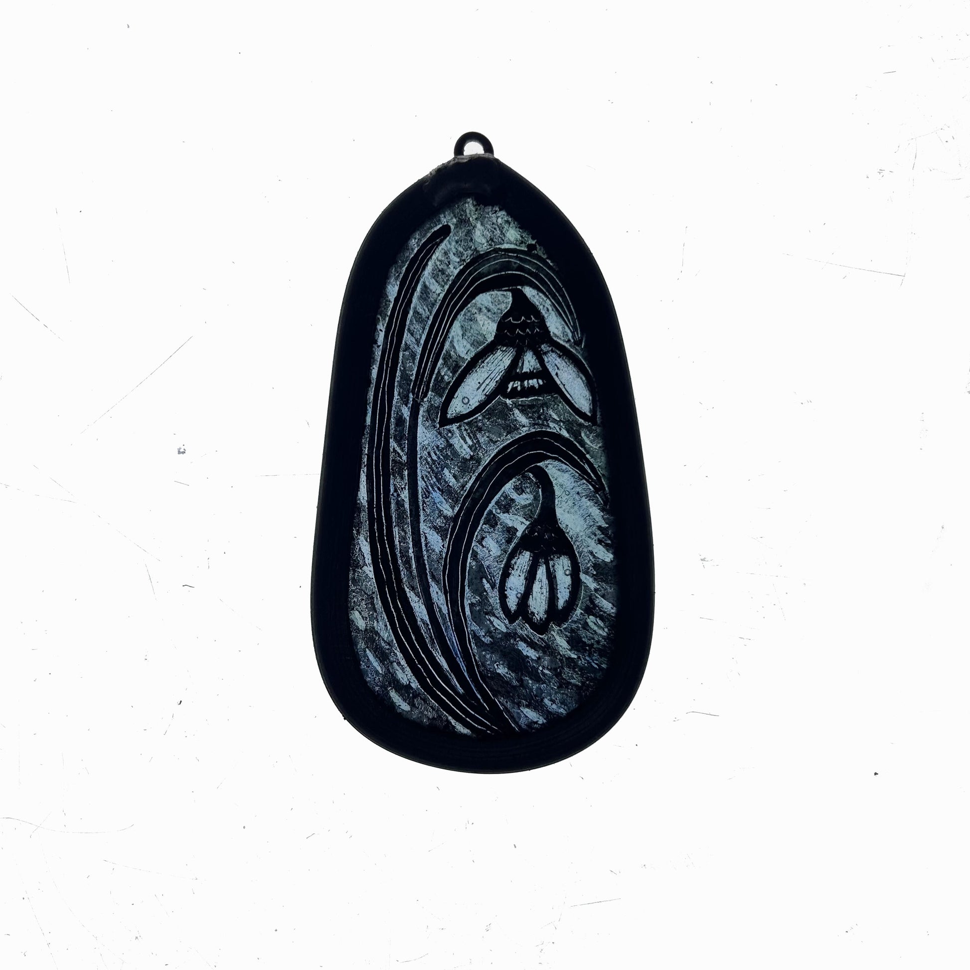 This one is painted on a soft light blue and aqua streaky and measures 10cm
