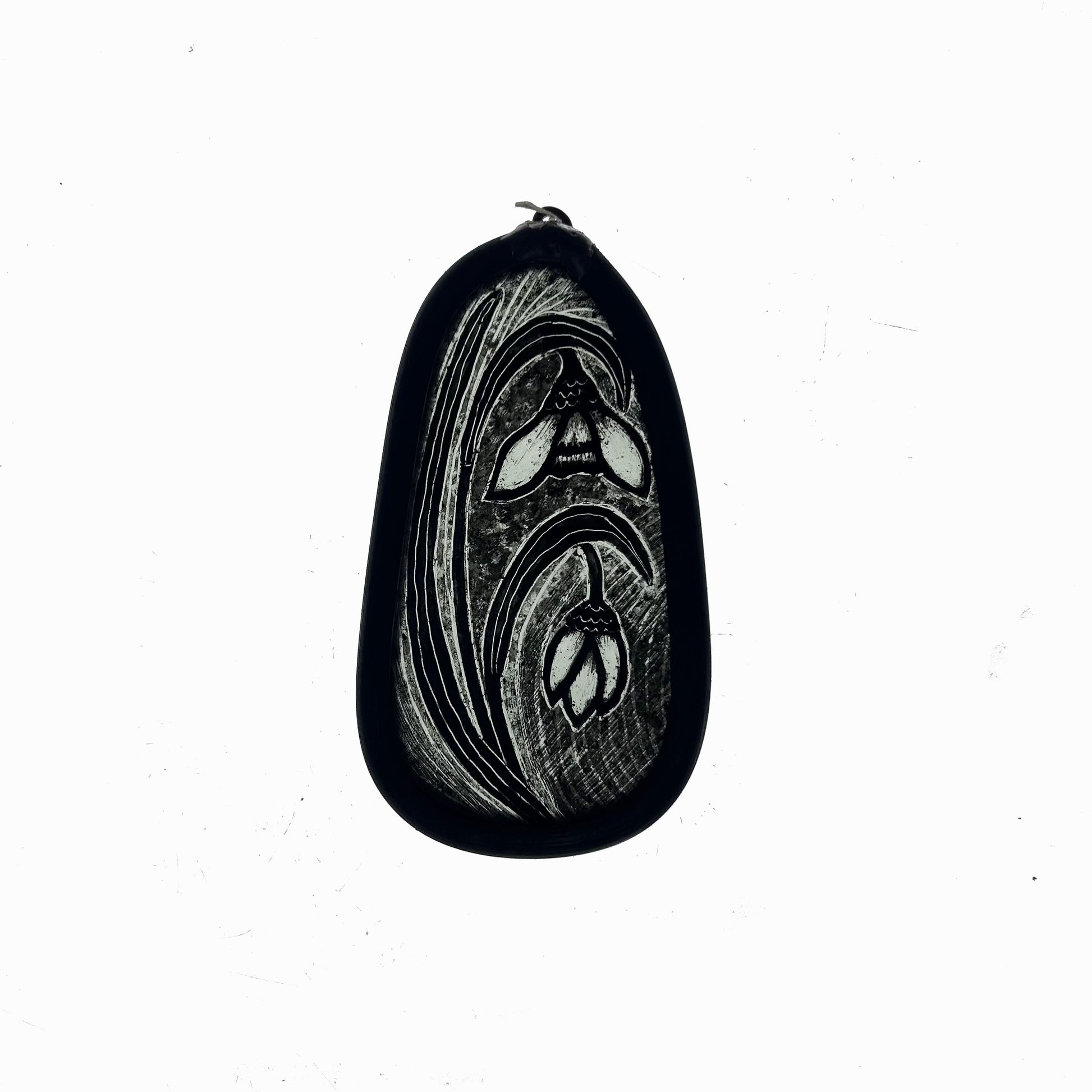 A pair of snowdrops symbolising the slow climb out of the winter darkness towards Spring. They are known as 'fair maids of Spring' and 'Candlemas bells' symbolising hope and renewal.