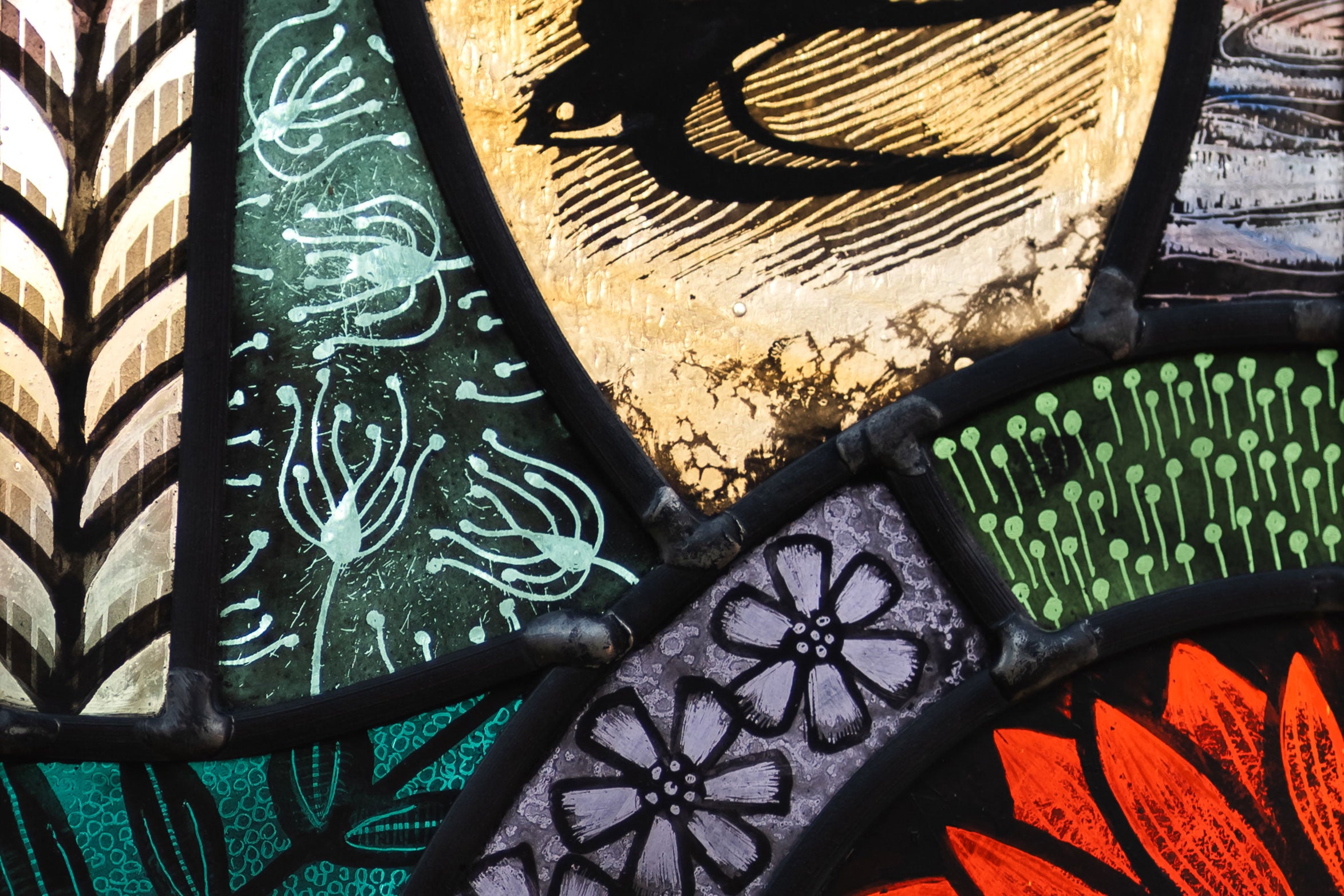 Wren and Dragonfly Stained Glass Panel, Rectangle
